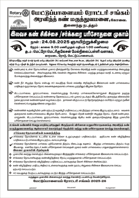 22.08.2025 Mega Eye Camp at Our Metro School. Rotary Mettupalayam . . .