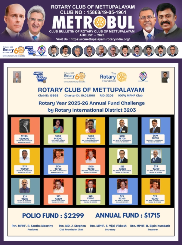 12.08.2025 Rotary Club of Mettupalayam Monthly Club Bulletin Metro. . .