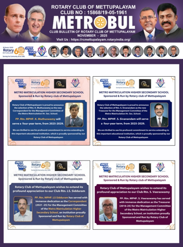 11.11.2025 Rotary Club of Mettupalayams Metrobul, a monthly bulleti. . .